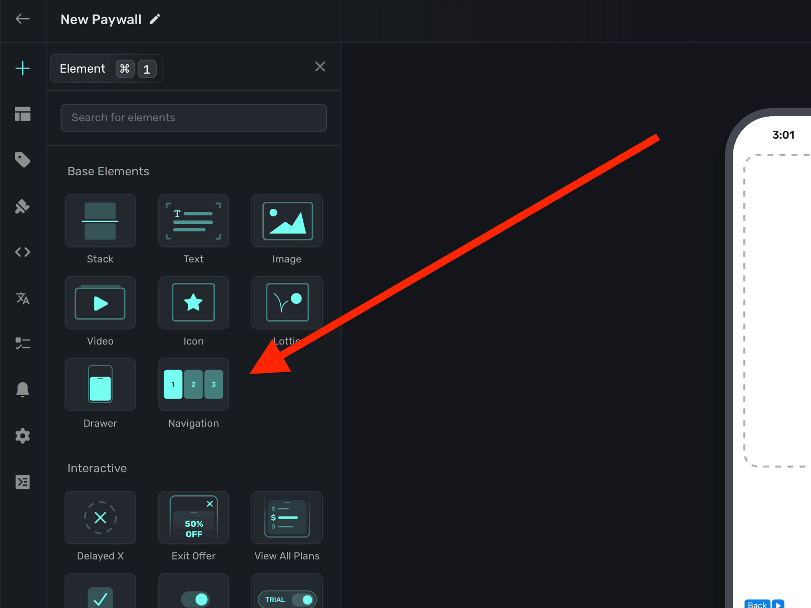 2. Choose Navigation under the "Base Elements" header.
